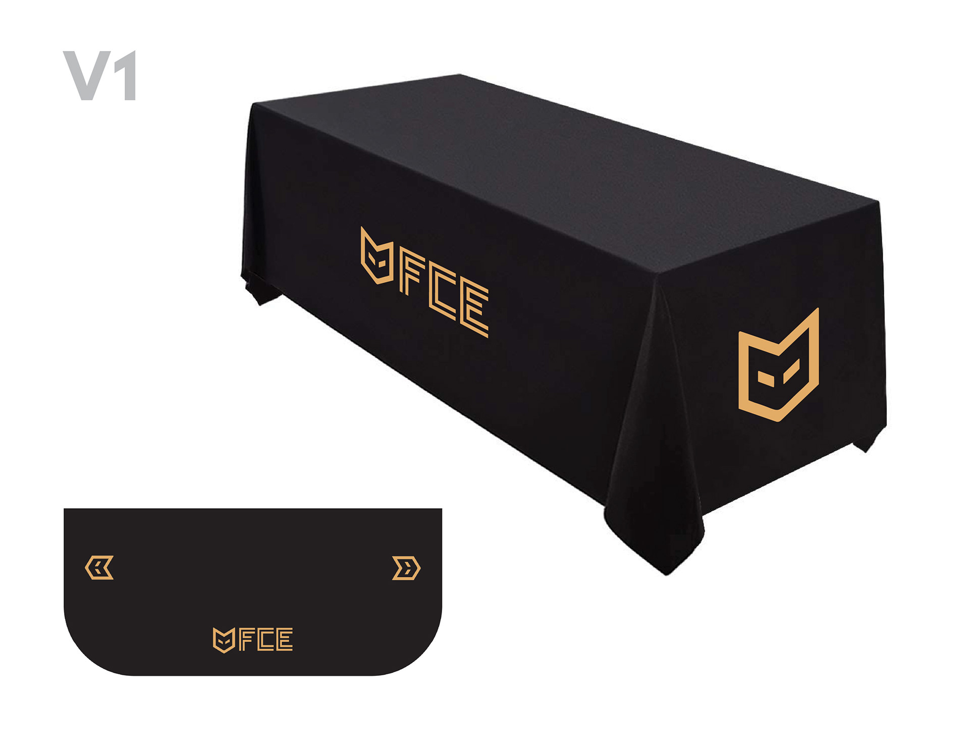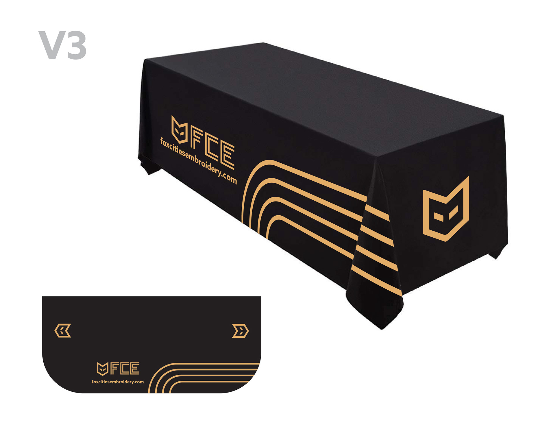 Sample designs for a Fox Cities Embroidery branded tablecloth.